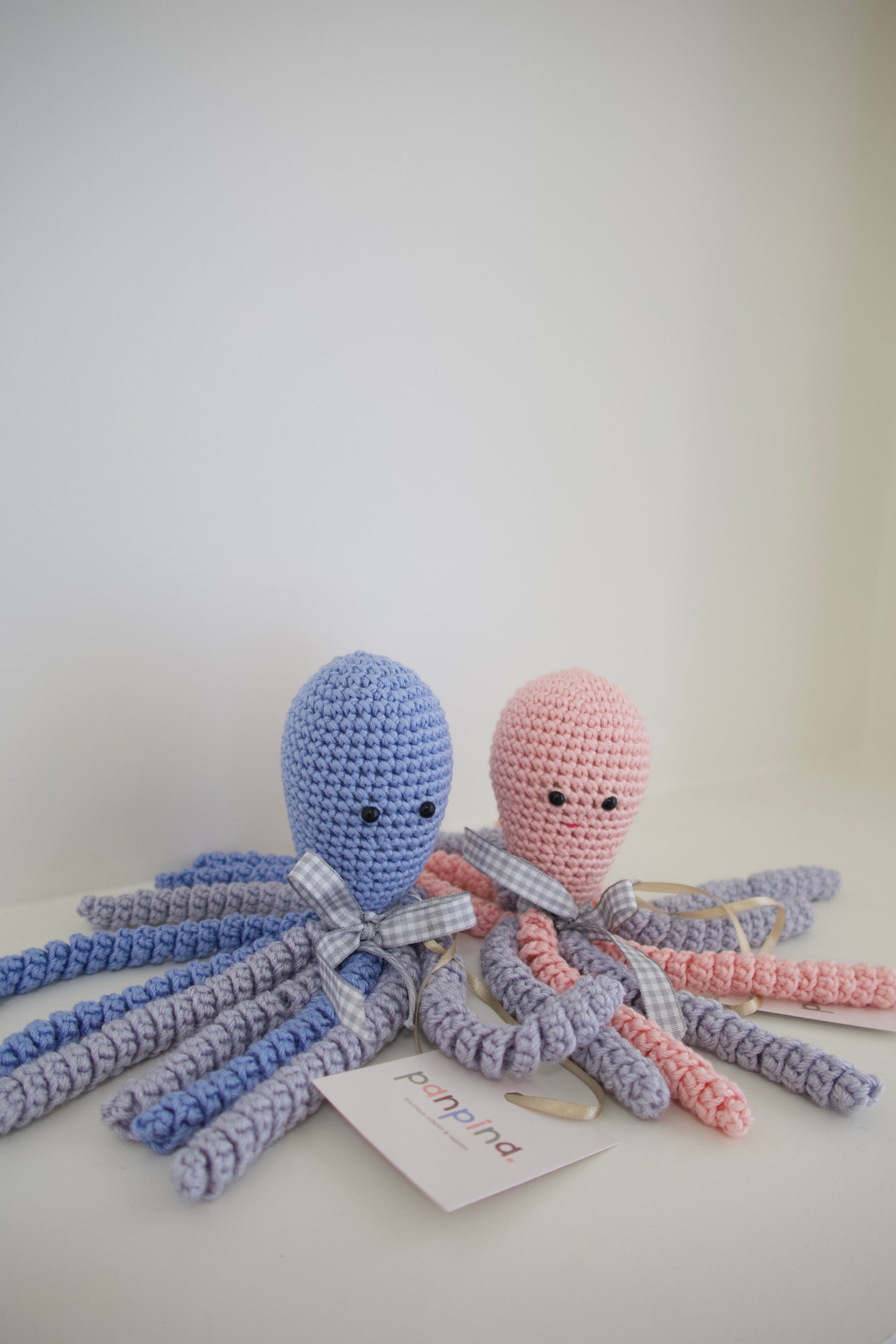 Pulpos tejidos azul y rosa. (se venden juntos)